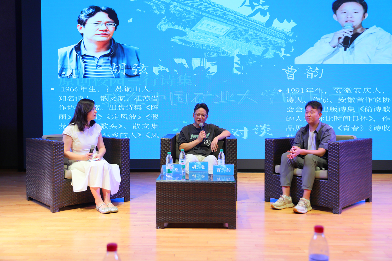 揭幕仪式后,诗人胡弦、曹韵围绕“矿大诗核——寻找诗歌创作中的生活入口”展开对谈,对谈由《青春》杂志社副主编陆萱主持。胡弦提出,当代青年在写作时要警惕“同质化”,鼓励矿大学子将矿大特色融入作品之中;曹韵认为,生活是诗歌创作的根基,只要抓住其关键瞬间,就能让诗歌充满力量。活动现场还设置了“诗意拼接”互动环节,现场气氛热烈。