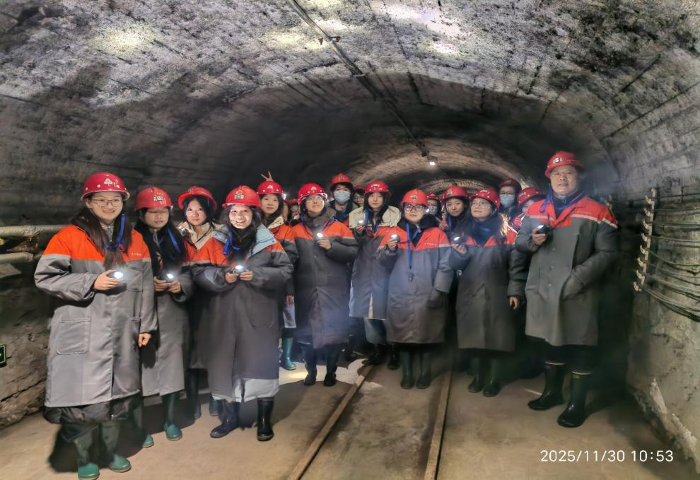 在晋华宫矿南山井旧址,师生们身着矿工服,乘缆车深入井下,先后参观了煤矸石展示区、灾害警示区及现代采煤展示区,近距离接触刮板运输机、液压支架等设备,直观感受煤矿一线的生产环境。在模拟综采工作面,师生们观察了智能化开采系统模型,对比早期矿难历史,更能深刻体会技术进步背后的人文价值。在南山井原堆场,师生们近距离接触了采掘、运输等各类煤炭机械设备实物。在煤炭博物馆,通过实物展示、场景复原等形式,大家系统了解了煤炭的生成演化以及能源革命发展进程,理解了煤炭作为基础能源的重要价值和能源革命的时代意义。