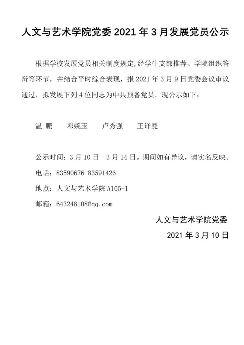 麻豆av 党委2021年3月发展党员公示