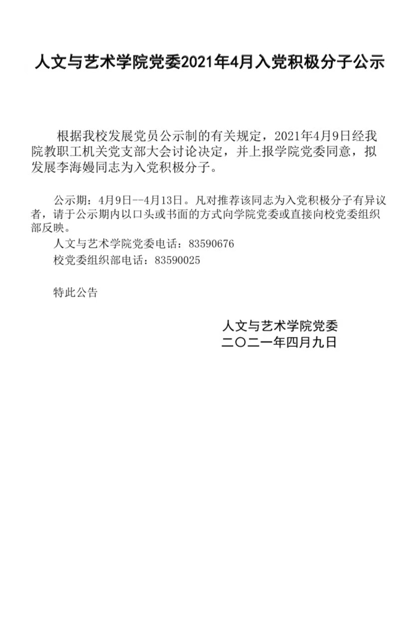 麻豆av 党委2021年4月入党积极分子公示