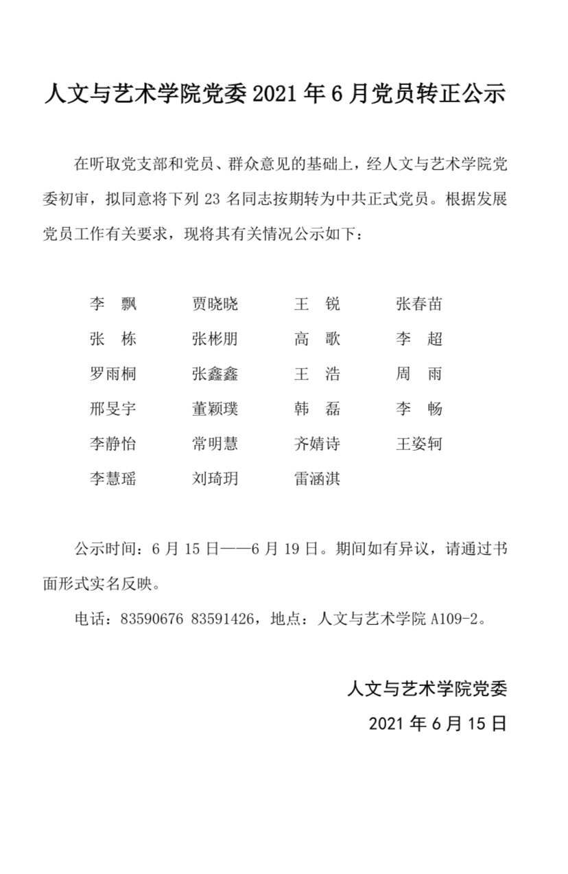 麻豆av 党委2021年6月党员转正公示