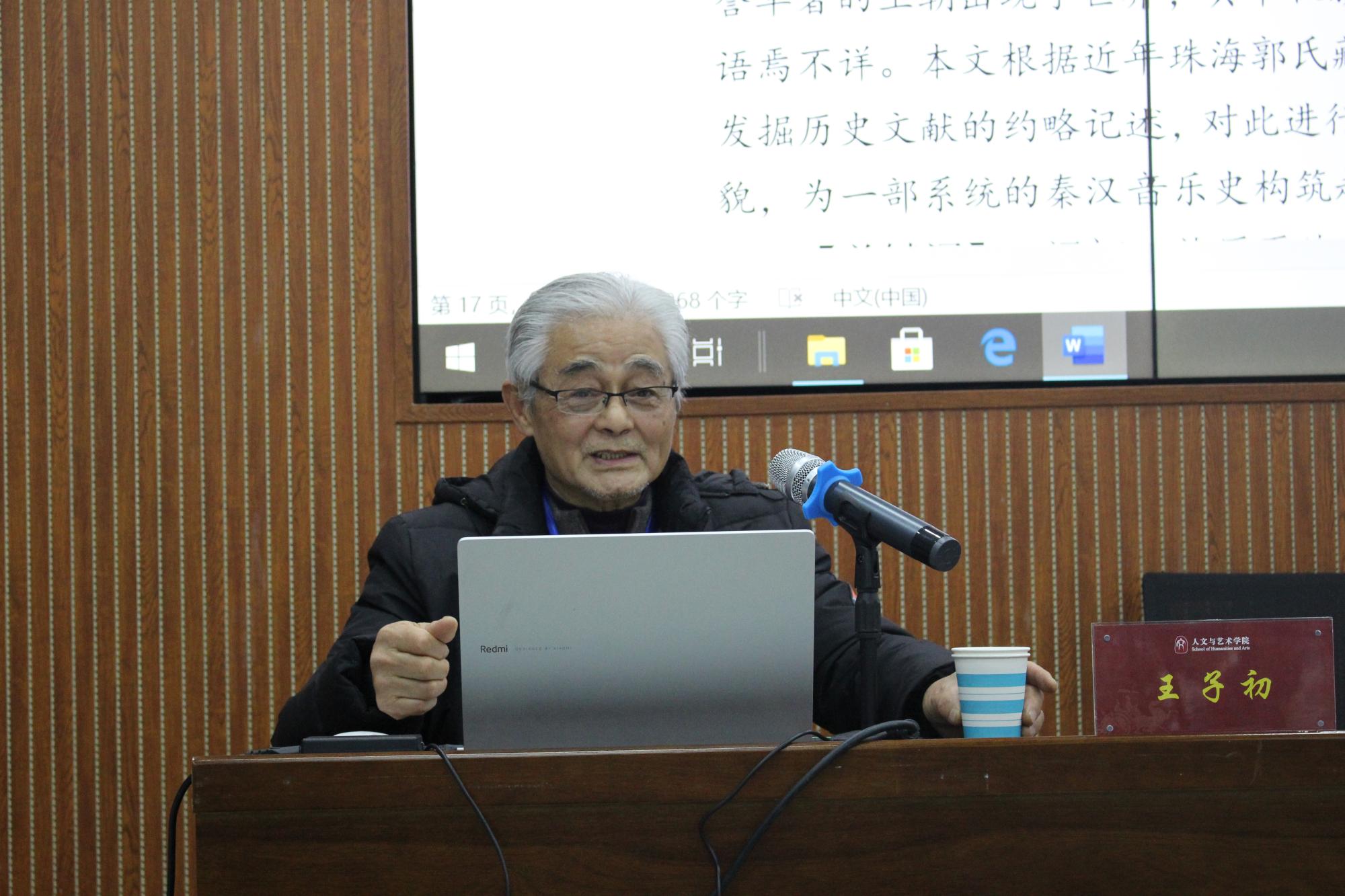 于文科楼A111会议室举办“叔孙礼赞——音乐考古与秦汉史”主题讲座。本次讲座由人文学院院长史修永主持,郑州大学音乐学院院长、音乐考古研究院院长王子初主讲,音乐专业部分教师及学生积极参与。