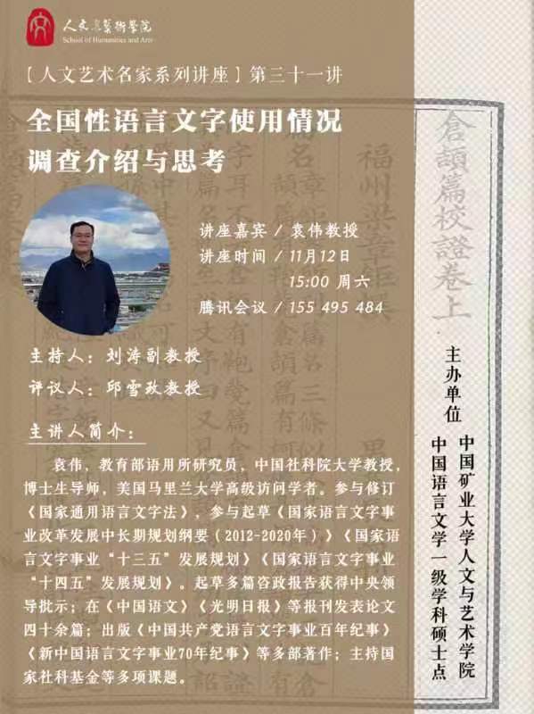 讲座主题:全国性语言文字使用情况调查介绍与思考