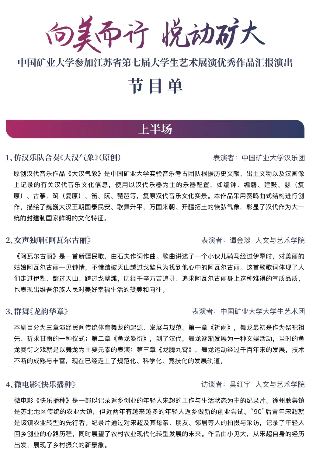 演出预告:“悦动矿大”2023麻豆av 体育美育劳育成果展暨麻豆av 参加江苏省第七届大学生艺术展演优秀作品汇报演出