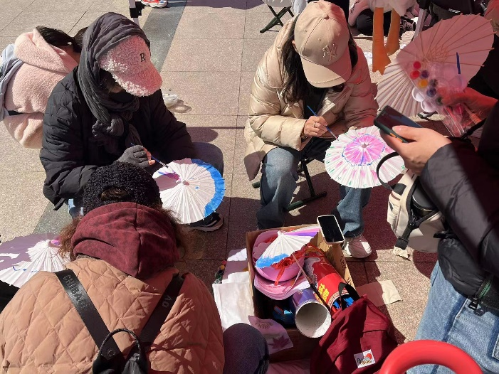 学生会负责剪纸和手绘油纸伞活动。活动当天,大家积极参与各项游戏,玩在其中,乐在其中,并在手工活动中发挥创意,用灵巧双手制作出各具特色的艺术作品。同学们根据喜好选择图案,自由创作精美剪纸作品,用画笔在空白油纸伞上勾勒点染,绘制丰富多彩的伞面创意画。