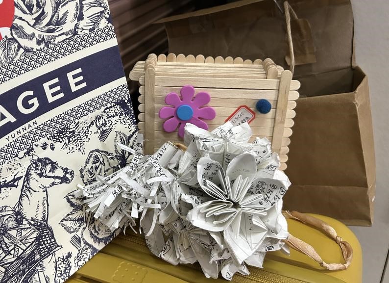 在活动过程中,志愿者们以身边的废旧物品为原材料,充分发挥自己的想象力和创造力,以别出心裁的方式对其进行改造焕新,制作出了一件件精美实用的作品,例如脱胎于旧木棍的收纳盒、墨香满满的装饰花束、以奶茶包装袋为原材料的抽纸盒。此番创新不仅展示了同学们在改造旧物上的巧思,而且使大家在实践的过程中厚植了环保理念,切实践行了“厉行勤俭节约”的低碳追求。