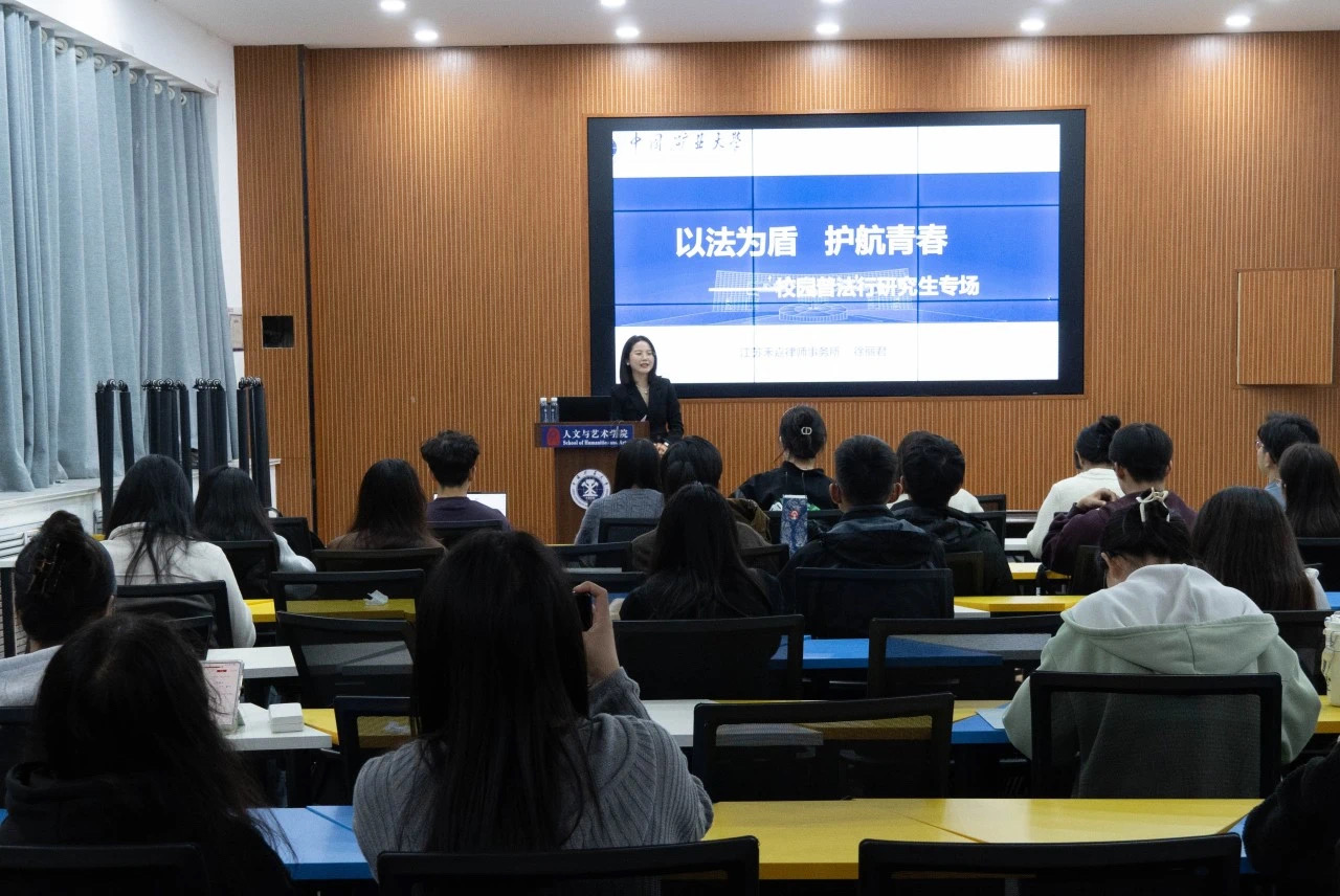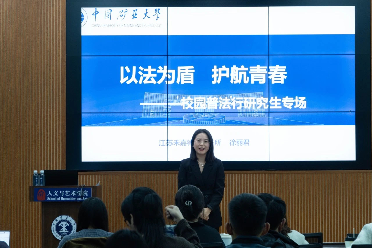 研究生会承办,并由经济管理学院研究生会等共计十个学院研究生会进行协办。活动邀请到江苏禾嘉律师事务所婚姻家庭业务部主任、国家二级心理咨询师徐丽君律师作为主讲嘉宾,她以“以法为盾,护航青春”为主题,凭借其丰富的实践经验和专业知识,为到场的研究生同学带来了一场关于婚恋、职场与生活的法律知识盛宴。