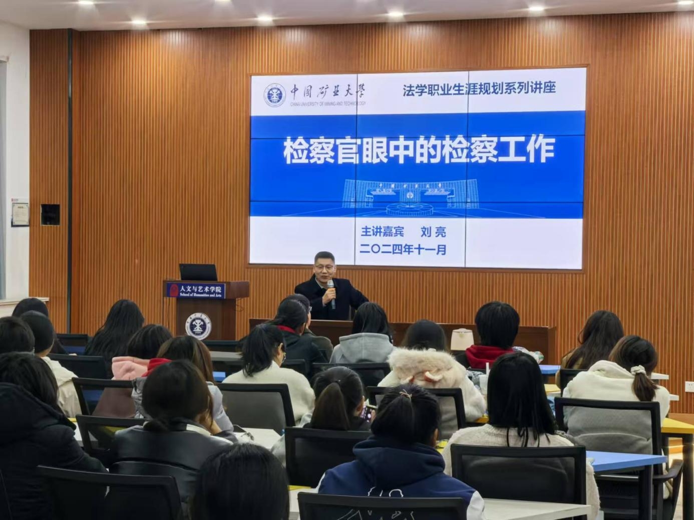 法学本科2004级校友、全国民事检察人才库成员、全省检察业务专家、全省民事行政检察业务标兵、徐州市人民检察院第六检察部主任、检察委员会委员刘亮受邀作“检察官眼中的检察工作”主题讲座。刘亮结合自身工作经历,为大家详尽分析了检察院在司法体系中的定位与职能,解释了检察院内部职务分配与检察官的日常工作。随后针对同学们关注的检察官入职要求等问题进行一一解答。他提醒同学们要明确学习目标并且及时调整,向着目标不断锤炼自身、厚积自我、静候时机。讲座现场反响热烈,同学们纷纷表示受益匪浅。
