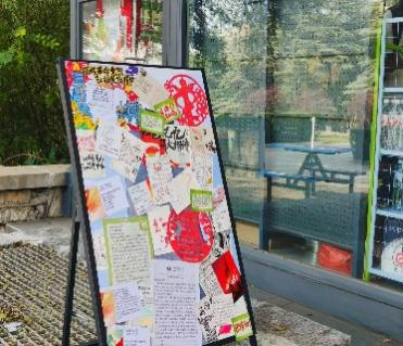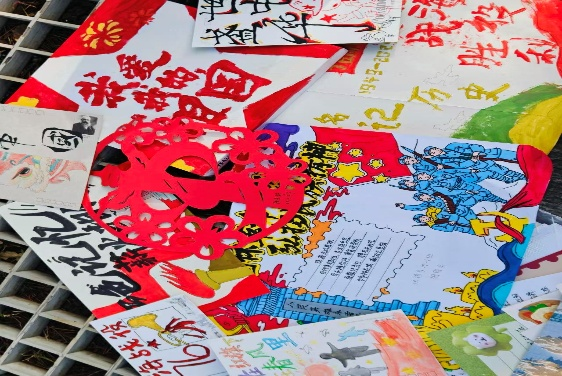 活动期间,志愿者们通过录音、绘画、明信片、书信等多样形式,自主完成红色主题文化创作。在音频录制中,志愿者们以沉稳舒缓的语调,将淮海战役的英雄事迹娓娓道来,让声音成为历史的载体;在绘画与明信片创作中,水彩勾勒五角星与战役场景,色彩之间寄托着对先辈的敬意;在书信中,一笔一画书写着对革命精神的深刻感悟与真挚传承。这些凝聚心意的作品,由主办方带至淮塔纪念馆,将录音钥匙扣现场发放给参观的游客,并以展板形式集中展出绘画与书信作品,使之成为红色文化传播的“新窗口”。志愿者们也在这一实践过程中,进一步深化了对淮海精神的理解。活动结束后,活动负责人统一收集所有作品及发放记录,并进行志愿时长打卡工作。