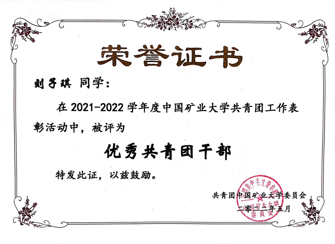 谈及学习与工作,刘子琪认为对自己来说二者是既相互制衡又相互促进的关系。她表示,学生工作确实不可避免地占用了平时的学习时间,但换个角度来看,就会发现这个过程极大地提高了协调能力和学习能力。“当即将迎来新的学生工作,却有一堆学业任务没有完成时,我就会努力提高学习效率,尽快完成任务,以预留出足够的时间来处理工作。同时,工作上的经验又在学习上给予我更多的启发。”镜湖大讲堂旁的小道是刘子琪在矿大校园中最熟悉的一角,许多同学在小道旁自习的身影给她留下了深刻的印象,“大家努力拼搏的样子深深震撼了我”。每天学习或是工作疲惫之余,刘子琪也会途经那条小道,“在这条小道上我看见了我过去三年奋斗的缩影。”