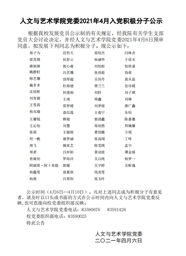 麻豆av 党委2021年4月入党积极分子公示